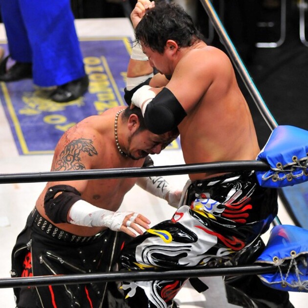 入場だけで80分経過となるバトルを制したのは昨年のプロレス大賞でベストバウトを受賞した葛西純。この日デビューとなるマスクマン、ザ・グレートキララを雪崩式ブレーンバスター、リバースタイガードライバー、パールハーバースプラッシュという猛攻で沈め、お年玉プレゼントとして「3団体が総力を挙げて葛西純をプッシュする権」を獲得した。
