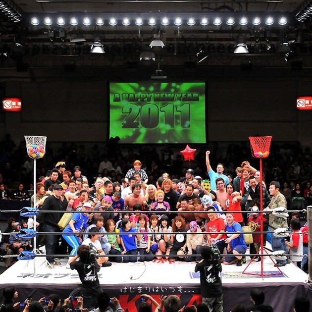 メーン終了後は出場全選手がリング上に集合。カウントダウンのやり直しと観客による玉入れの後、TAKAみちのくの音頭の元、「ファイト、ファイト、プロレス!」の掛け声で、2011年もプロレス界を大いに盛り上げていくことを互いに誓い合った。