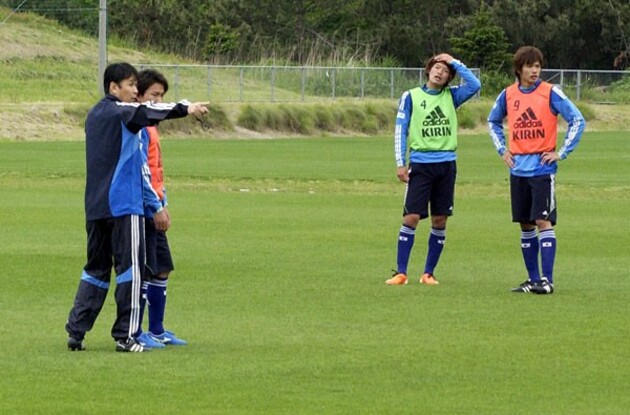 紅白戦を見る限り、この試合の予想スタメンはGK権田修一、DFは右から酒井宏樹、濱田水輝、村松大輔、酒井高徳、中盤ダブルボランチは山村和也と山口蛍、サイドハーフは右に清武弘嗣、左に原口元気、トップ下に東慶悟、1トップに永井謙佑という4−2−3−1。しかし権田も語るように、選手の中には「誰がスタメンで誰がサブというのはない」という。
