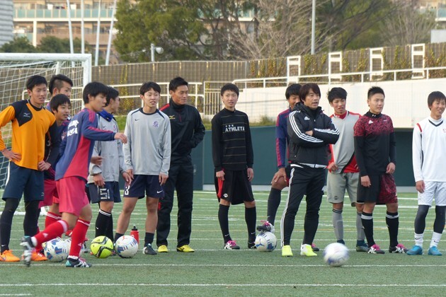 シュートアクションに入るエリアと相手GKのポジション、動きに応じて的確な判断、もしくは直前での判断変更から「ゴールが決まる正しいシュートフォームを遂行すること」を体で理解する大社の選手たちは、シュート練習で次々に曲線のシュートを決めていく。その高い決定力を見た大儀見、能登の2選手からは、「うまっ!」という感嘆の声も上がったほどだ。