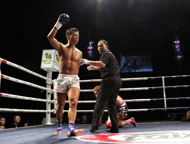 サウスポーから強蹴する左ミドル、ヒジ打ちで襲うゴンナパーだが、健太はこれに気圧されることなく右ハイを放って決めダウンを奪取。その後もアッパーを交えたパンチの連打、左ハイでラッシュして初回を終える。
