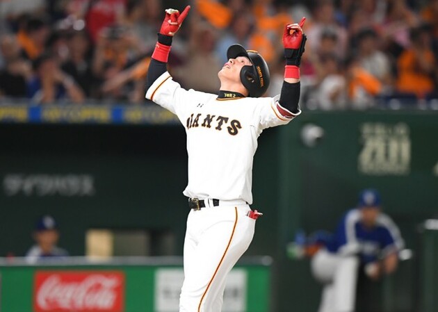 3軍→2軍戦と実戦を重ね、5月下旬に1軍へと復帰。6月中旬、打率は一時、3割2分6厘まで上昇した。だが、好調は長くは続かなかった。大卒3年目の重信慎之介の台頭もあって、8月に入ってからはスタメンを外れる試合が増えた。打席を重ねる中で調子を上げていく右打者は、代打や途中出場でなかなか結果を残せない。通算100号のメモリアルアーチは、9月に入って2本目の安打だった。