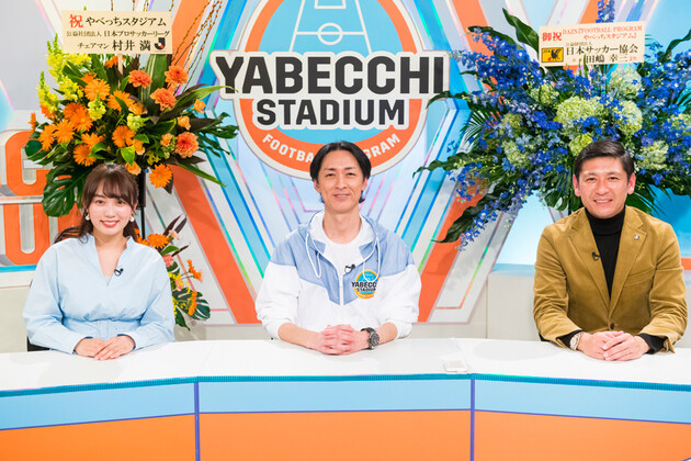 「どうも、ナインティナインのやべっちです」という第一声とダブルピースに続き、「ちょっと言わせてください。興奮しております」という言葉で、DAZNの新番組『FOOTBALL PROGRAM やべっちスタジアム』は開幕した。