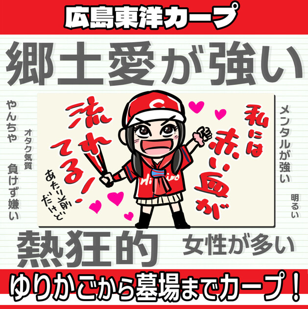 そして「○○そうなファンNo.1」では「女性ファンの居心地が良さそう」1位(27.83%)と、ここでもカープ女子がイメージをけん引。「女子人気の先駆けになったカープです」というコメントが力強い。