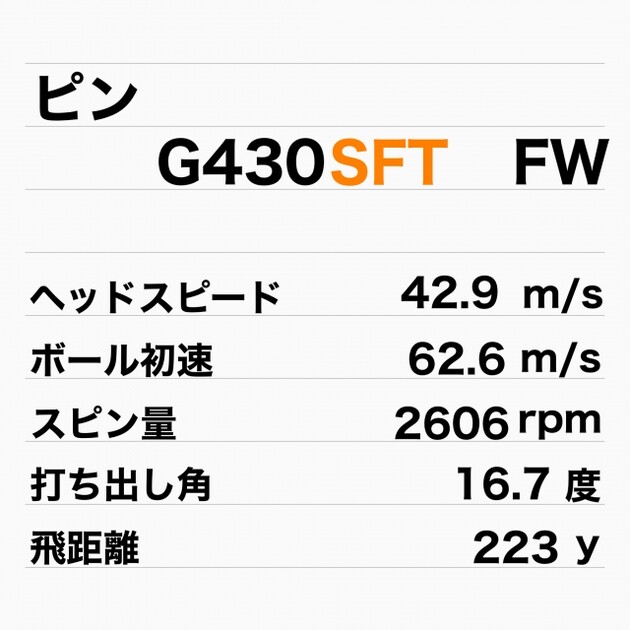 データ的にはMAXと似ていますが、スピン量に違いがあり弾道の高さに現れていました。MAXでは前に前に飛ぶ弾道なのが、SFTでは上に飛んでいくイメージです。その分、飛距離的には劣るのも事実。