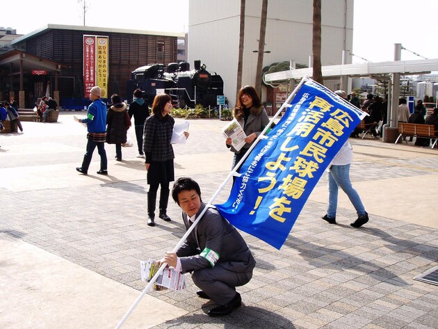 就任した年の10月、松井は「旧広島市民球場跡地委員会」を設置している。だが、市民や議会の声に耳を傾けながらも、最終的には「緑地広場機能」を優先。さらに新スタジアム建設地については、旧市民球場跡地ではなく広島みなと公園がある宇品を強く推したため、サンフレッチェ広島との平行線はぎりぎりまで続くこととなった。