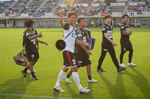 「相模原での最後のシーズンは1試合も出られませんでしたし、そこで引退しようかと思っていたんです。正直、貯金も底を突いていましたからね(苦笑)。契約満了を食らうと、そのたびに50パーセント近く年俸がダウンするうえに、翌年には税金でごっそり持っていかれてしまう。子どもも大きくなって、これからさらにお金がかかるし、本当にどうしようもない状況なのに、妻はそう言ってくれて……。それで続けていったからこそ、最後は再びJリーグ(岩手)に戻ることができたんです」
