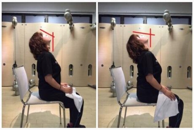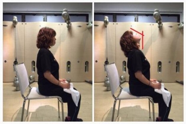 姿勢を正したまま首だけを後ろに倒し、見える範囲を目でチェックしましょう。