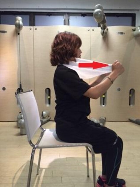 3~5秒引っ張りながらキープ!!この動作を5回繰り返し行います。