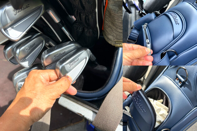 4人パーティー時にも隣のバッグに気を使う事なく、自分のタイミングで自由にクラブや小物の取り出しが快適に出来ます。