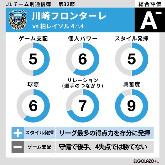 【総評】柏のビルドアップに対して臆せずにボールを奪いにいき、さまざまな形から4ゴールを奪った攻撃面は十分に評価できるが、対照的に守備面は課題が多く残る。はがされたときに逆サイドで人数が足りなかったり、押し込まれたときに人を押し出せず、ボールホルダーにプレッシャーを掛けられなかったり、三度もあったリードを守り切れなかった。
