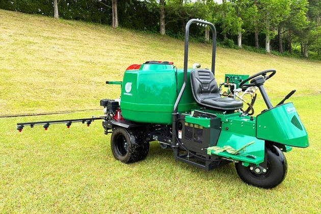 薬液の少量散布と省力化を実現 マルナカ『グリーンスプレーヤー GF500SE』に試乗してみた@@2025東北ターフフェス
