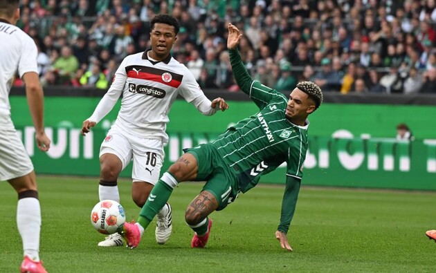 だが、4万2100人収容のサッカー専用スタジアムであるヴェーザー・シュタディオンは記者席が1階席に設けられており、クリアボールが近くに飛んでくるほどの距離感で試合を観戦できる。目の前のサポーターが興奮して立ち上がるとピッチが見えなくなるという難点もあるが、選手たちの声が聞こえてくる、ドイツでは数少ないスタジアムなのである。