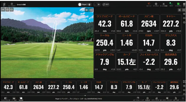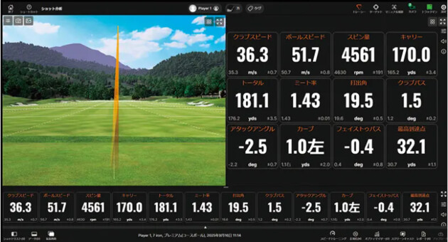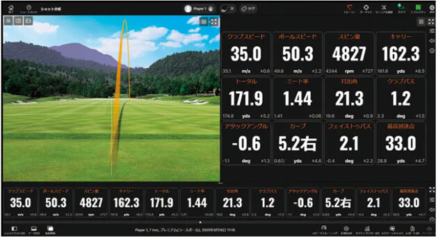 「G-Jack+」に12gのウエイトを装着すると、体感的には手元側の重量がかなりあるので体でしっかりリードしていく感じを受けますが、ちょっとヘッドがついてこない状態になるのか、数値で見ると、クラブヘッドがインサイドに落ちてしまっています。私には合いませんでしたが、自分にマッチする重さを見つけられるというのが「G-Jack」シリーズの目指すところなのかなと思います。