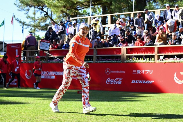 スタートホールのティーイングエリアに立つと、あでやかなオレンジのウェアが目を引く。加えて、パンツにはロブスターのプリントがたくさん…。「ちょうど最終戦用のウェアの中に、この組み合わせが届きました。私、エビが好きだし、ちょっといいかなぁと思って」と明かしている。目立つこともプロフェッショナルの重要な要素だ。それを着こなしてしまう、センスがある。これひとつで、評判をとれそうでも、やはりプレー内容の良さが加わらなければ、見る立場からすれば、ハデだった-そんな印象が少し残るだけだ。
