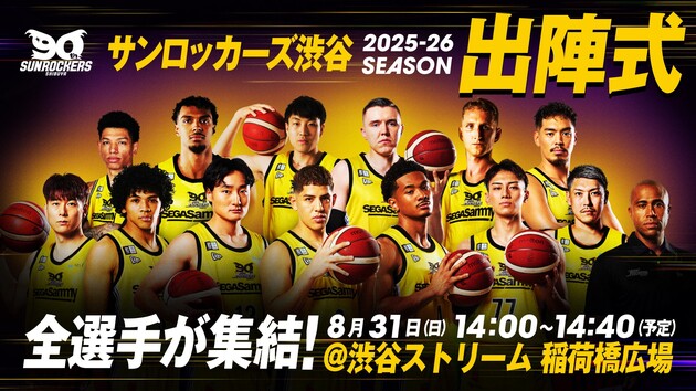 このたび、サンロッカーズ渋谷では、2025-26シーズンの開幕に向けて、渋谷ストリーム前 稲荷橋広場にて「出陣式」を開催いたします。