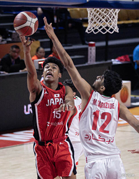 カザフスタンとの開幕戦は107-51、続くサウジアラビア戦は78-58、いずれも終始リードを奪う展開で2連勝。同じく無傷のイランとの予選グループフェーズ最終戦。序盤は3本の3ポイントシュートを決めたイランに先行されます。しかし、第1クォーター終盤、ホーキンス然選手(開志国際高校)が3ポイントシュートを決め返し、18-17と逆転。ホーキンス選手は4本の3ポイントシュートを決め、20点。前回大会でイランから2勝を挙げた経験を持つ白谷柱誠ジャック選手(福岡大学附属大濠高校)がチームを牽引し、最多の24点を記録。2人ともリバウンドでも二桁を越え、ダブルダブルと活躍。イランの追い上げに対し、細部に渡って練習を積んで来たディフェンスで凌ぎます。第4クォーターは走ってイランを圧倒し、86-67で3連勝。全員バスケを体現し、予選グループ首位突破で最初の関門をクリアしました。