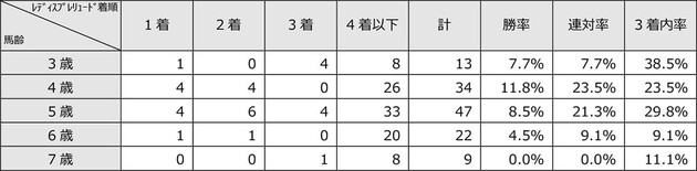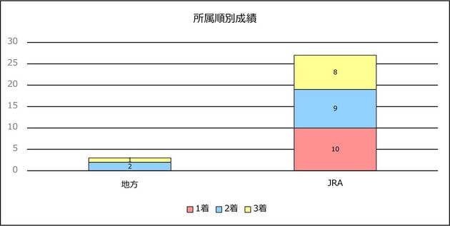 なお、第16回(令和元年)以降の過去6年に限ると、「地方」の馬は[0-0-0-37](3着内率0.0%)、「JRA」の馬は[6-6-6-12](3着内率60.0%)である。基本的には「JRA」所属馬を高く評価するべきだろう。