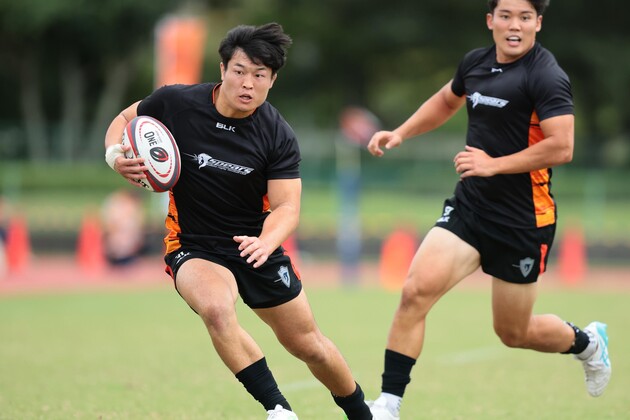 リーグワンライジング2戦目、三菱重工相模原ダイナボアーズ戦の残り3分。スピアーズは逆境に立たされていた。リードしていたここまでだったが、後半途中から立て続けにダイナボアーズにトライを奪われて21対19点の2点差。明らかに流れは相手に傾いていた。このまま逆転を狙いたい優勢のダイナボアーズと、流れを変えたいスピアーズ。そんなタイミングで地面に転がったイーブンボール。これがこの試合の「カイロスの前髪」だった。