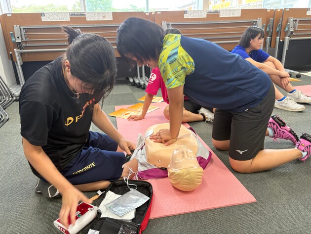 アスレティックトレーナー部に所属し、男子バレーボール部の学生トレーナーを務める安井瀬七さん(体育学科4年)は「救命講習会や安全管理研修会で学んだことが現場で役立っています。試合中に選手が体調を崩した際に処置の指示を行ったり、試合会場で一般の方が転倒して怪我をされた際に応急処置を行うことができました。こうしたとっさの判断ができた経験は、私の活動に大きな自信に与えてくれています」と語り、制度化が現場に確かな安心感をもたらしています。