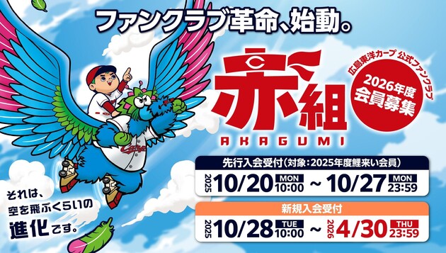 2026年度より広島東洋カープ公式ファンクラブはこれまでの内容を一新し、「赤組」として生まれ変わります。『革命的進化』、『自由と権利』をキーワードに、新たに“ポイント制度”を導入。