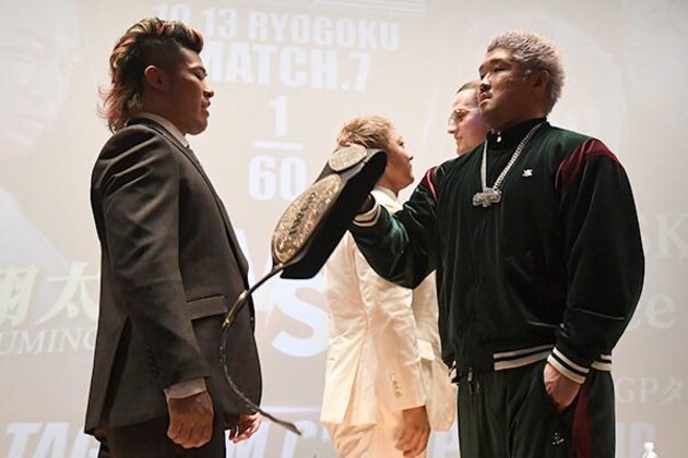 ICEがふてぶてしく挑発三昧!「海野は大人ぶっててつまんねえ! HEAT STORM、また明日、HIGHにしてやる」上村は「HIGHじゃなくて、俺がお前のハートを熱くしてやる!」と応戦!!【10.12両国コメント】【10.12公開調印式③】