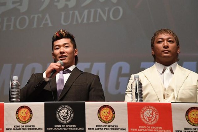 上村「同世代でタッグのベルトを争うということは、新日本プロレスの今後のタッグ選手権の今後を占う試合になると思います。今、この世代というよりも新日本プロレスでタッグとしてのチームが少ないというか、マンネリ化してきている中で、彼らは新しい風邪を吹き起こしているわけで、そこで彼らだけがいても面白くないと思うんで、ここで僕と海野さんが彼らを1回、いや何回でも引きずり下ろして、まだまだ新日本プロレスの壁が厚いんだぞと、明日しっかり刻みたいと思いますね」