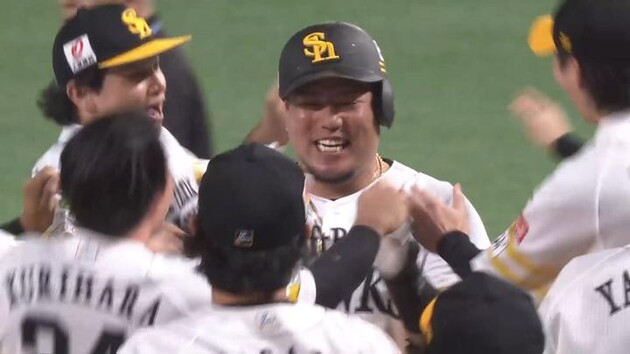 10回表は藤井皓哉投手がつなぎ、迎えた10回裏。四球と今宮健太選手の安打などで1死満塁の好機を演出する。ここで打席には山川穂高選手。初球をうまく捉えると、三塁手の頭を超える適時打となり、2対1でサヨナラ勝利を挙げた。柳町達選手、栗原選手、今宮選手が2安打の活躍を見せている。