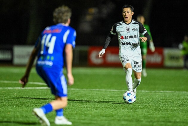 ◆ 前半は立ち上がりからボールを支配し、主導権を握る展開。クノックFCは多くの選手を自陣に残してゴール前を固め、守備に徹した。6分には伊藤がゴール前でFKを放つも、惜しくもポスト直撃。15分にはコーナーキックのこぼれ球からムジャがシュートを狙うが、わずかにバーの上。