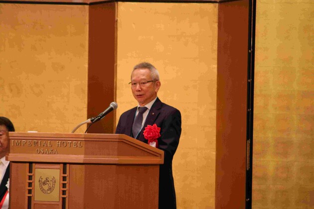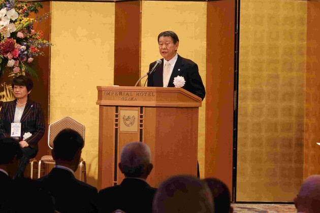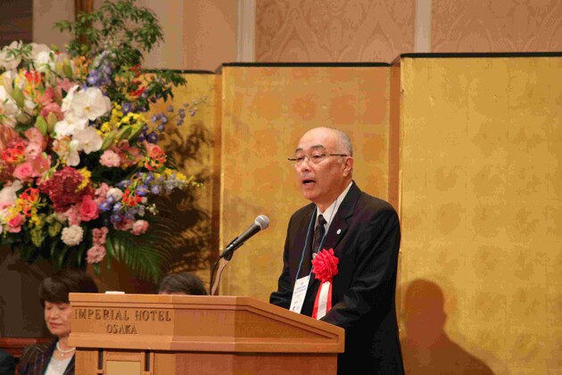 記念式典では、初めに長家秀博同窓会会長から開式の言葉があり、野田賢治浪商学園理事長が「全国各地で同窓会の皆さんが入学希望者をご紹介してくださりありがたく思っています。これからも同窓会の皆さんにはご協力いただき、大阪体育大学の発展にお力添えをお願いします」とあいさつした。